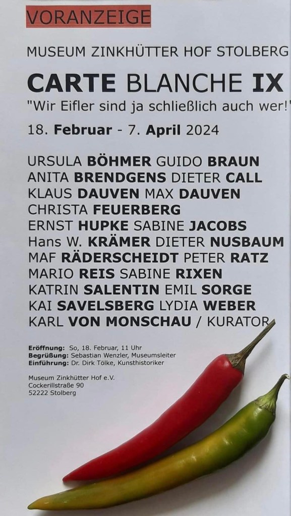 Carte Blanche einer der interessantesten Ausstellungen an der ich mit werk 2.6 teilnehmen durfte, auch hier nochmals Vielen Dank an Karl von Monschau für die Einladung.